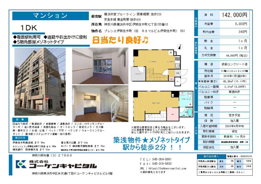 募集物件 横浜市営地下鉄 坂東橋駅 徒歩2分 49.96㎡ 住居